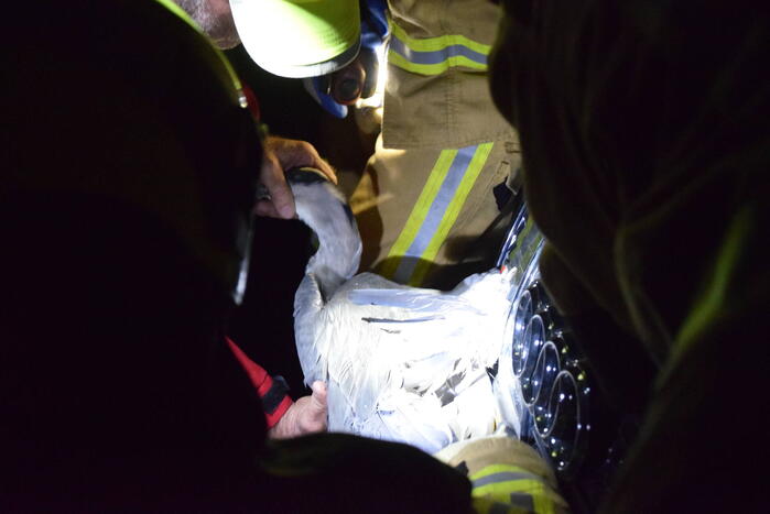Een reiger bleek in de grill van een personenauto terecht te zijn gekomen. Met de inzet van de brandweerlieden is het dier bevrijd en overgedragen aan de dierenambulance.