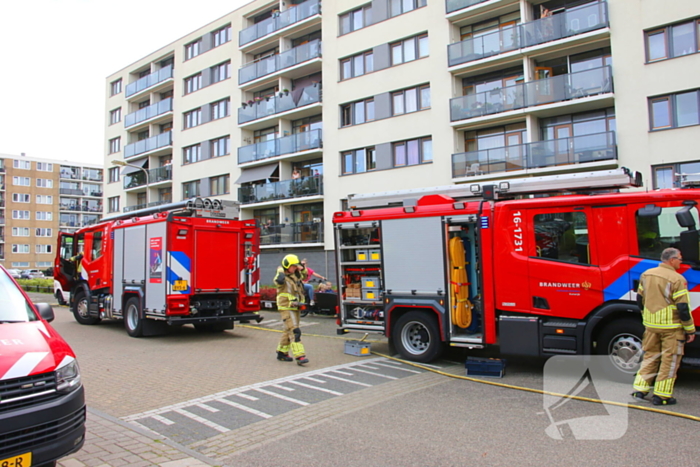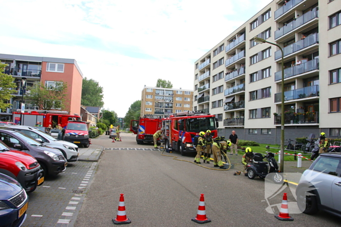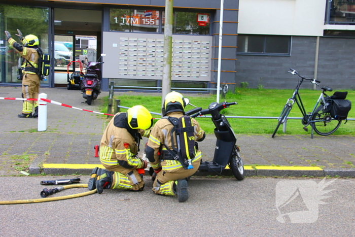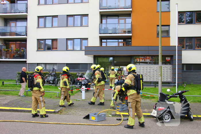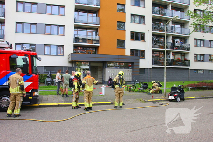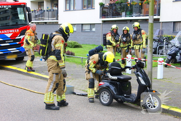 De brandweer kwam met meerdere voertuigen naar het appartementencomplex en voerde een onderzoek uit. De oorzaak bleek een scootmobiel te zijn waarvan de accu aan het smeulen was. De brandweerlieden brachten de scootmobiel naar buiten, haalden de accu eruit en plaatsten deze in een bak met water.
