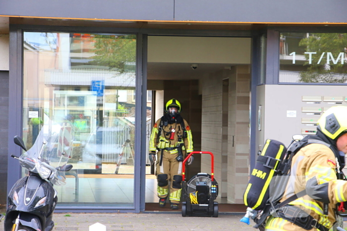 Het appartementencomplex werd vervolgens met behulp van een ventilator geventileerd.