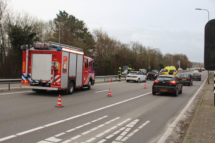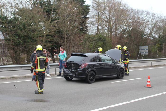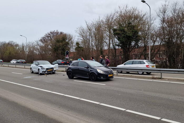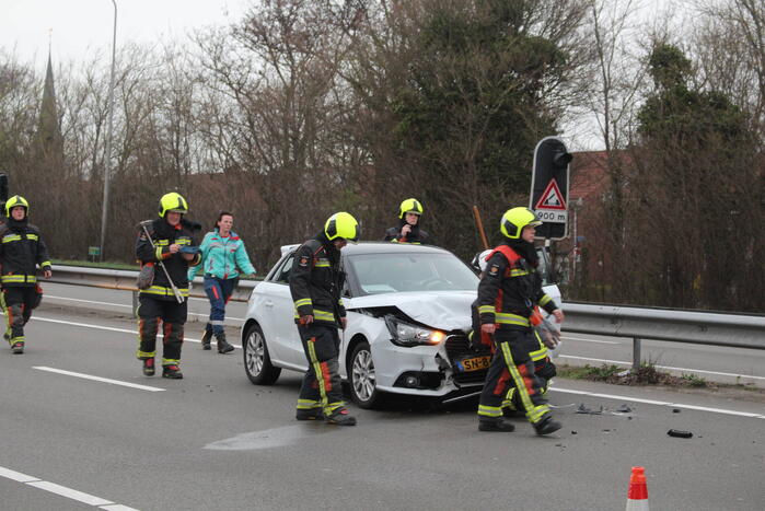 Bij een kop-staart aanrijding zijn twee personenauto's flink beschadigd geraakt. De inzittenden zijn gecontroleerd in een ambulance maar vervoer naar een ziekenhuis bleek niet nodig. De brandweer heeft de betrokken voertuigen veiliggesteld.
