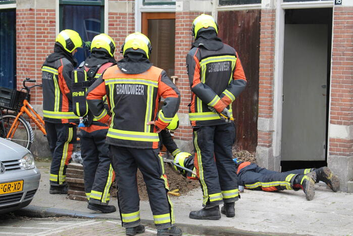 De gaslekkage ontstond door boorwerkzaamheden binnen in de woning. De brandweer probeert de lekkage te dichten tot netbeheerder Liander aanwezig is.