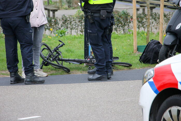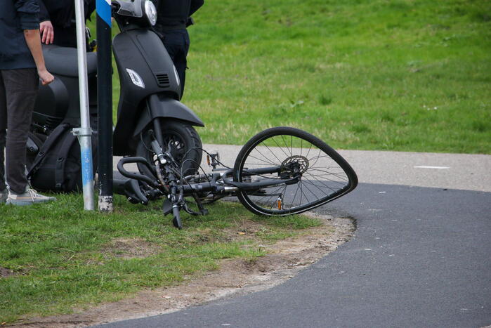 Bij een botsing tussen een scooterrijder en een fietser is een persoon gewond geraakt. Het voorwiel van de fiets raakte zwaarbeschadigd. Beide personen zijn nagekeken door het ambulancepersoneel waarna de bestuurder van de scooter is vervoerd naar een ziekenhuis.