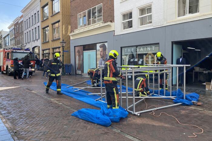 LEIDEN - Maandagmiddag 5 april rond 12.40 uur is er een bouwsteiger omgevallen aan de Haarlemmerstraat in 112 Leiden.
