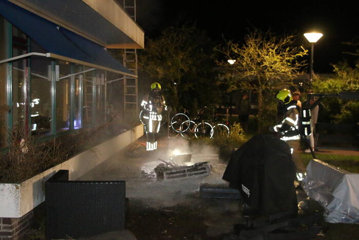 Bij de brand is niemand gewond geraakt. Mogelijk was een vuurkorf met smeulende resten hierin de oorzaak van de brand.