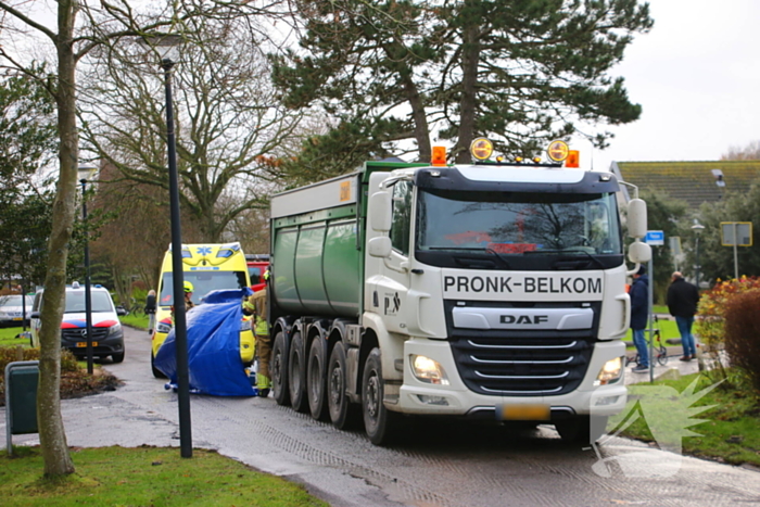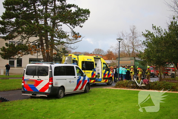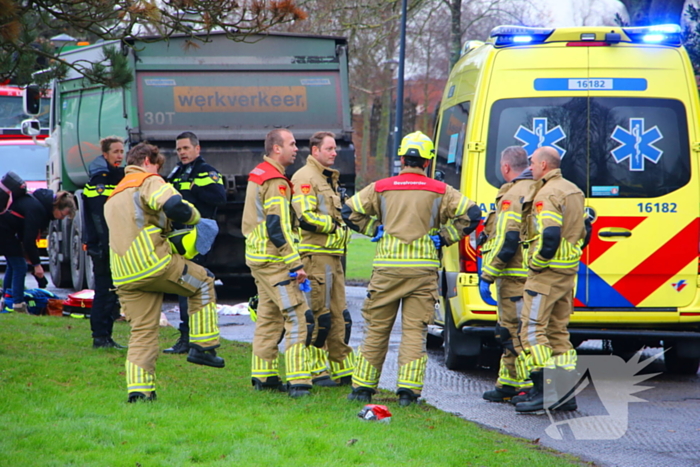 Een persoon raakte zwaargewond en werd vervolgens samen met de trauma-arts met spoed per ambulance naar het ziekenhuis overgebracht. het slachtoffer is door een vrachtwagen overreden.