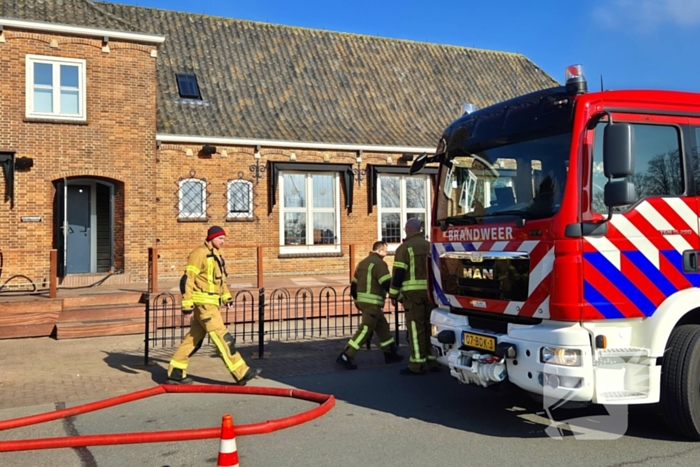 De brand zou volgens de brandweer woedden in een spouwmuur. De brandweer heeft de brand opgeschaald naar het sein 'middelbrand'. Voor zover bekend raakte niemand gewond.
