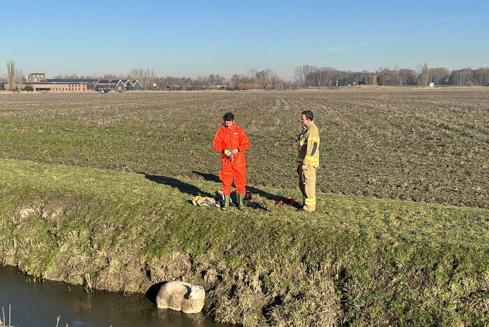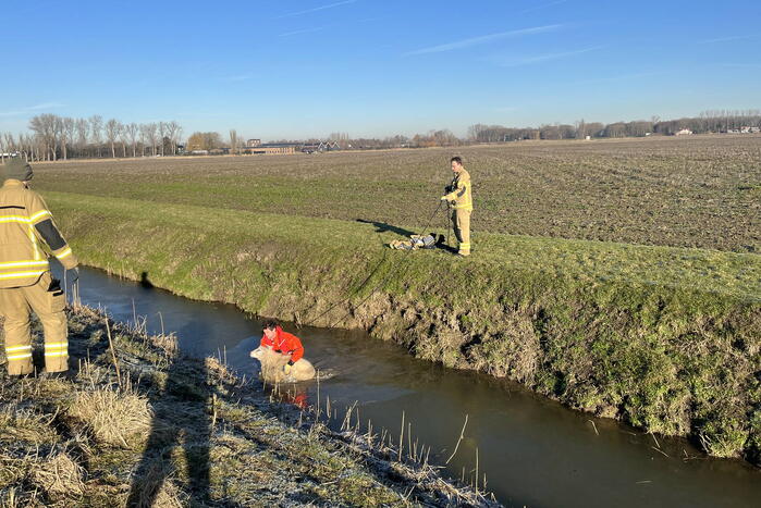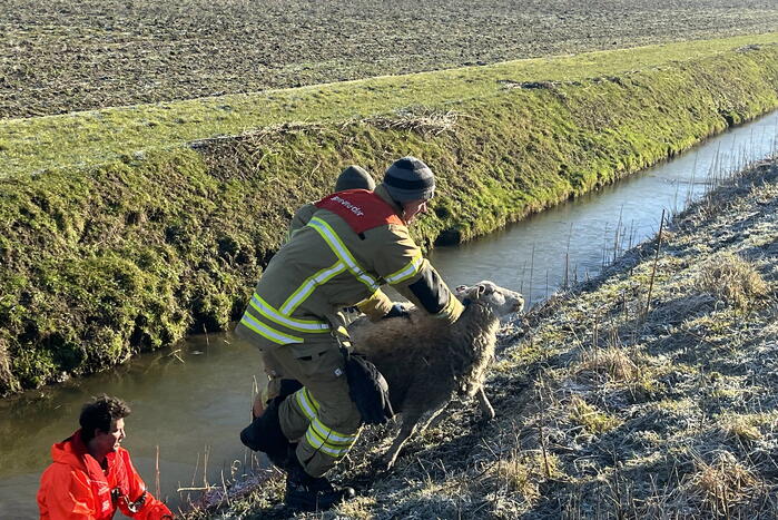 Brandweerlieden hebben het schaap uit zijn benarde positie te bevrijden. Een schaap zat vast in een sloot en kan er niet meer zelfstandig uitkomen.