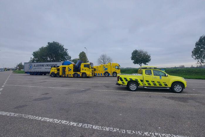 De vrachtwagen is door een speciaal bergingsbedrijf afgesleept naar naastgelegen tankstation. De vrachtwagenchauffeur is ongedeerd gebleven.