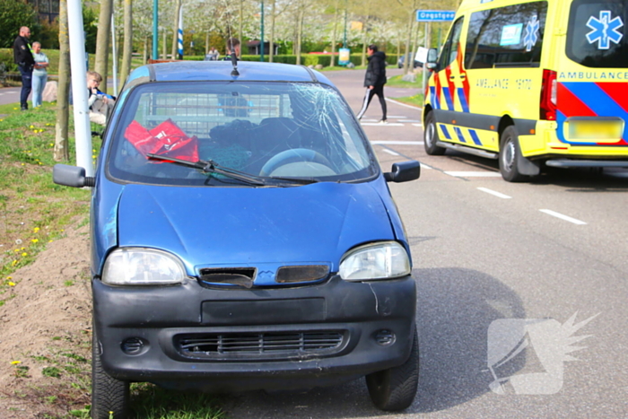 Door de klap liep de voorruit van het voertuig forse schade op.