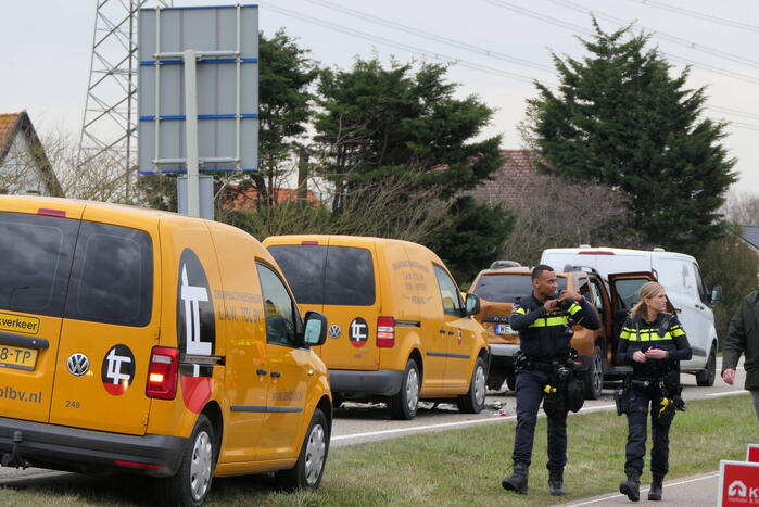Drie voertuigen hadden door een nog onbekende oorzaak een kettingbotsing met elkaar gekregen. Een van de voertuigen was zo zwaar beschadigd dat er onderdelen van de motor op de weg lagen. Personeel van een ambulance heeft de bestuurders nagekeken, maar zover bekend hoefde er niemand mee naar het ziekenhuis.