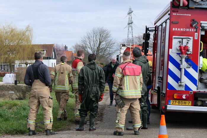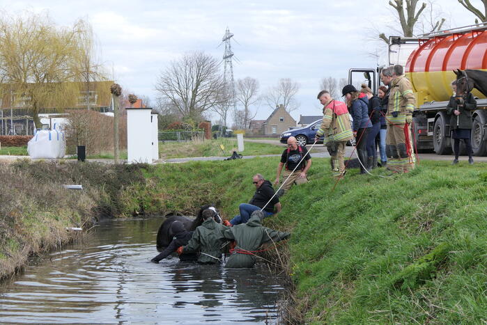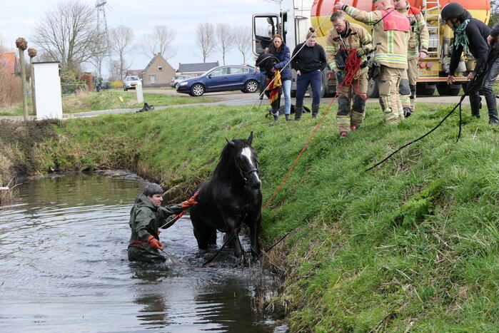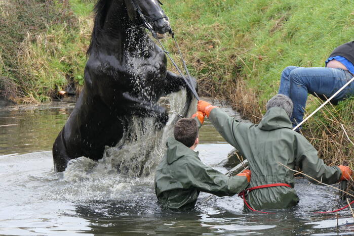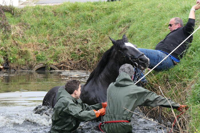 Door nog onbekende oorzaak was een paard in een diepe sloot terechtgekomen. De brandweer is in waadpakken het water ingegaan voor de redding. Het paard sprong al snel met wat hulp van de brandweer uit de sloot.