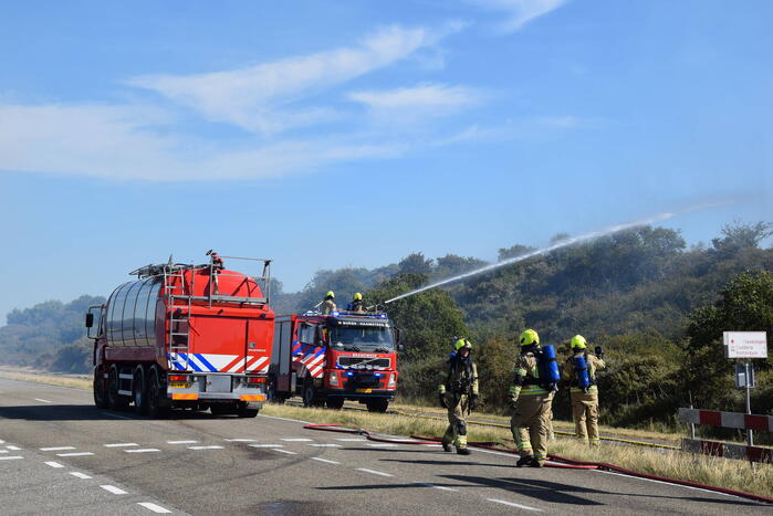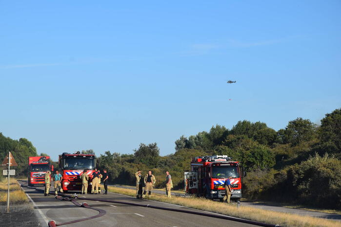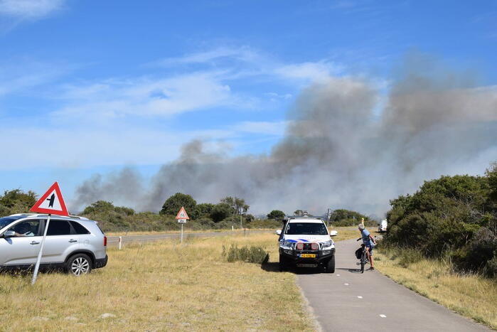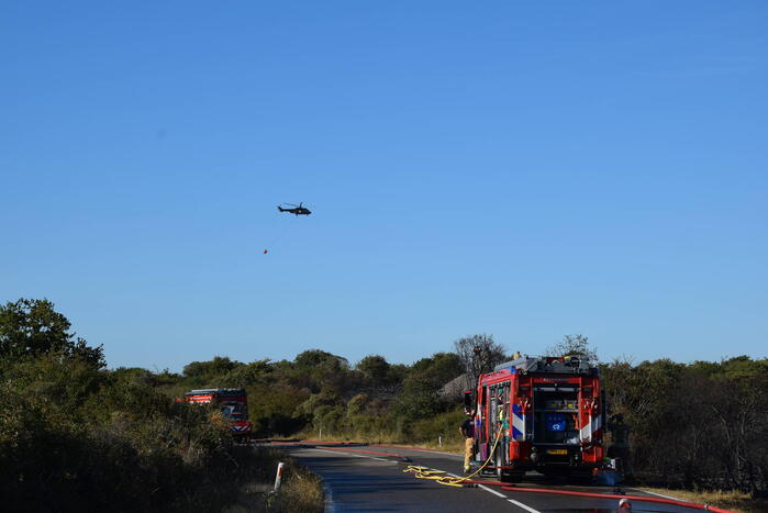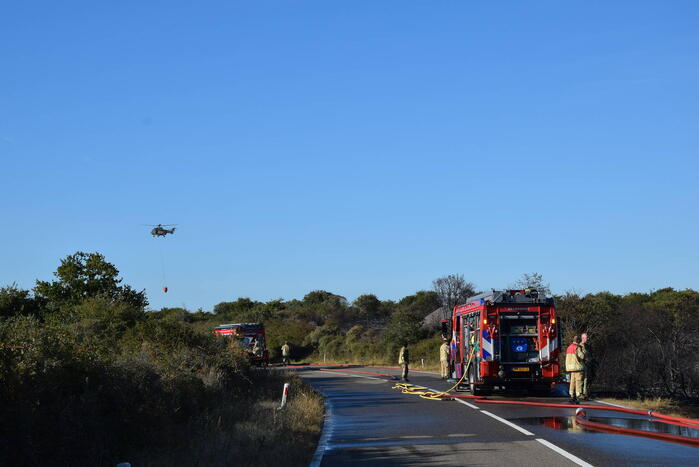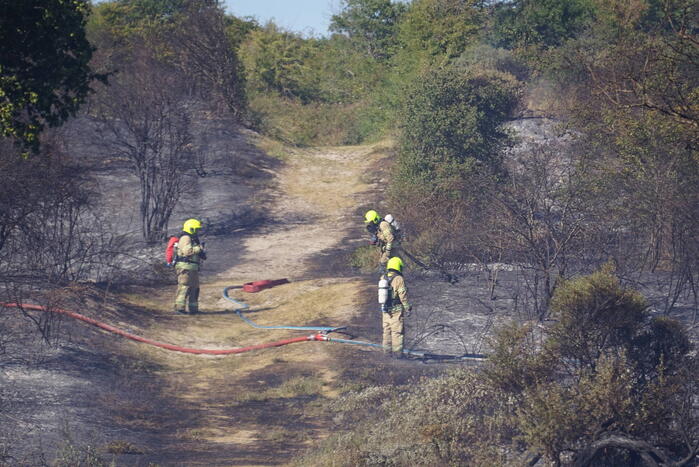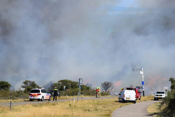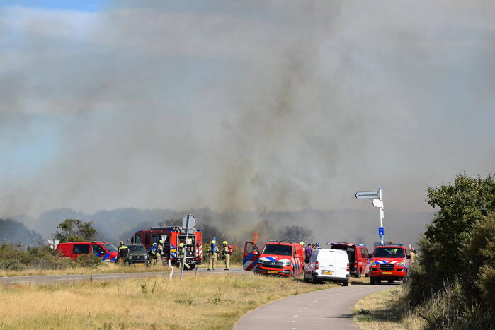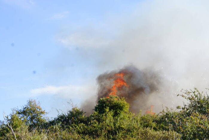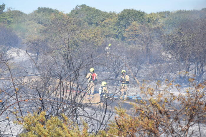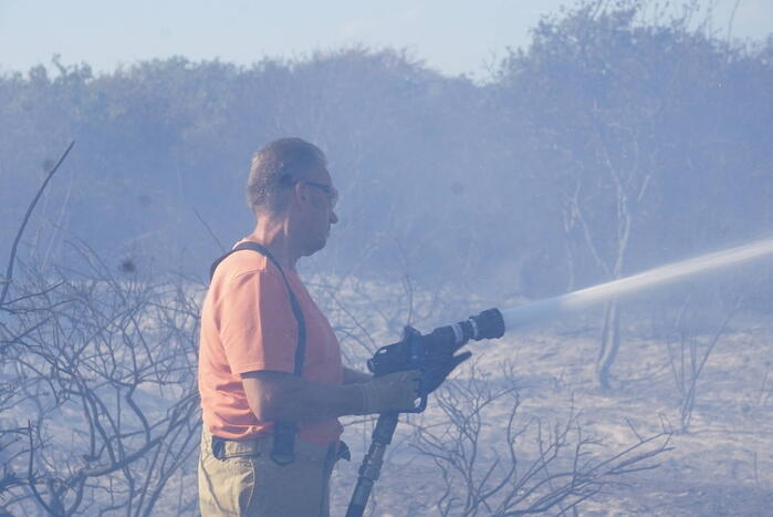 OUDDORP - Dinsdagmiddag 9 augustus rond 15.55 uur was brand ontstaan in een bosgebied met duin, net na Brouwersdam aan de Noorzeekant in 112 Ouddorp.
