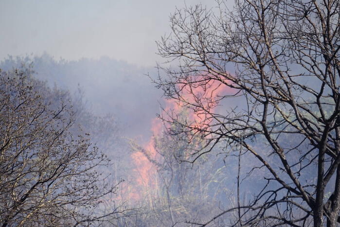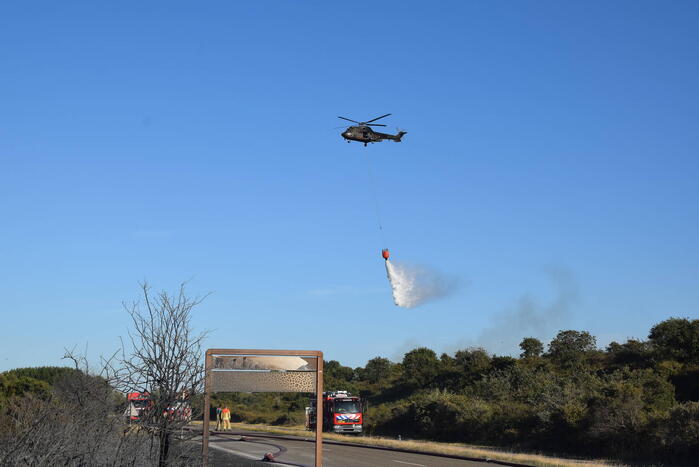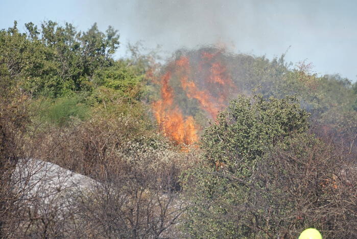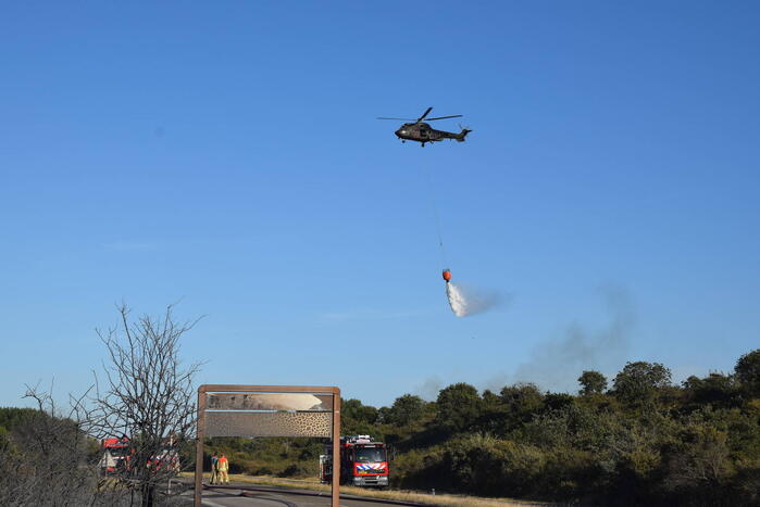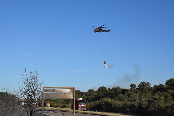 De brand breidde erg snel uit en er kwamen metershoge vlammen vanaf wat gepaard ging met flinke rookontwikkeling wat verre omtrek goed te zien was. De brand sloeg over naar de andere kant van provinciale weg. De brandweer had op sommige plekken moeite om bij de brandhaard te komen en moest andere posities innemen. De hulpdiensten schaalde op naar GRIP2 zeer grote brand. De brandweer werd massaal ingezet, waaronder meerdere pelotons, twee blushelikopters van de luchtmacht en een handcrew.
