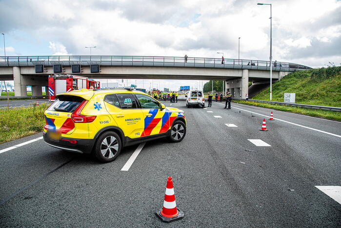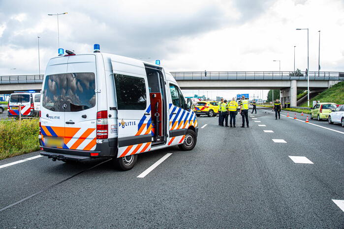 Het slachtoffer is met spoed vervoerd naar een ziekenhuis. De Forensische Opsporing Verkeer is een onderzoek gestart naar de toedracht van het ongeval. De snelweg is vanwege het ongeval in de richting van Rotterdam volledig afgesloten voor verkeer.
