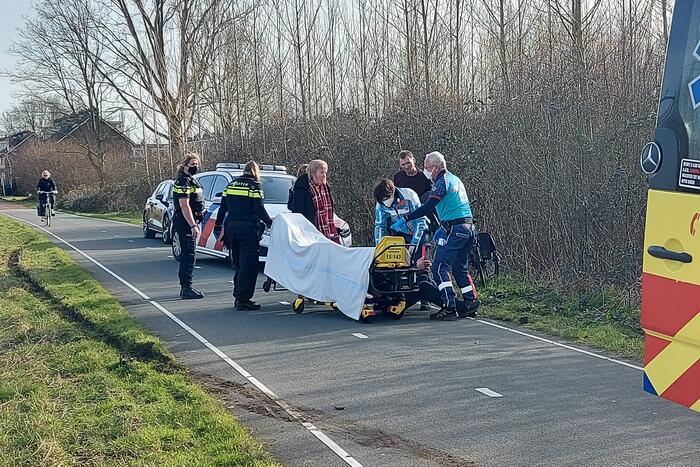 Een persoon was hier hard ten val gekomen met een fiets en gewond geraakt. Na behandeling door het ambulancepersoneel is het slachtoffer vervoerd naar een ziekenhuis. Waarom de fietser ten val kwam is niet bekend.