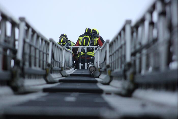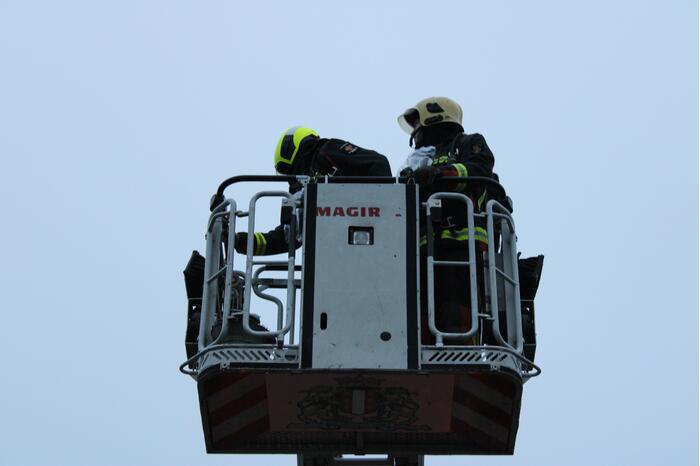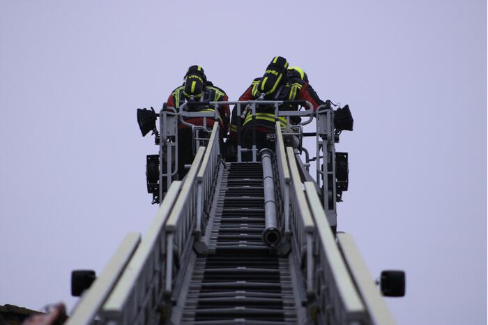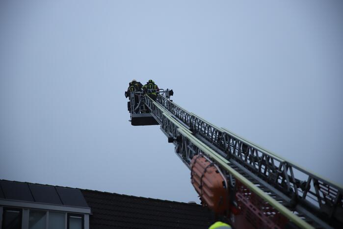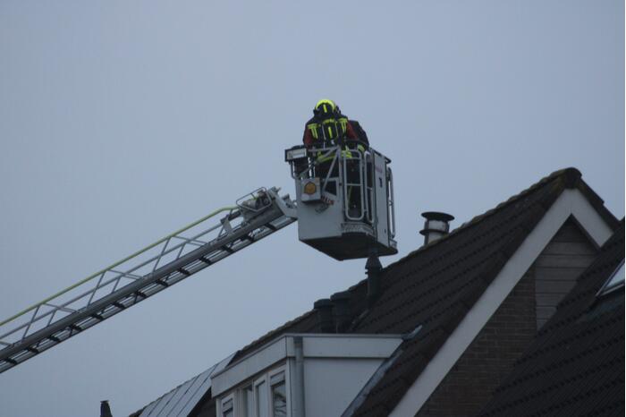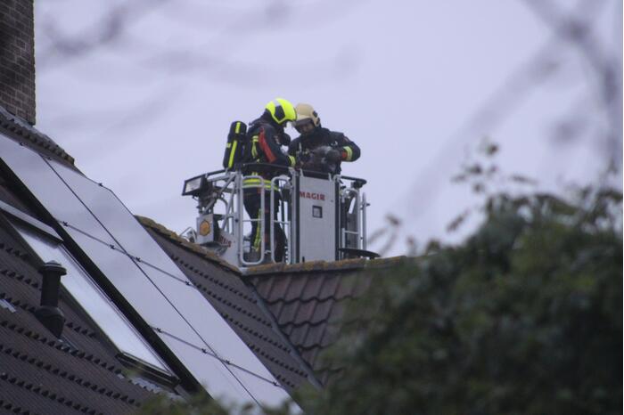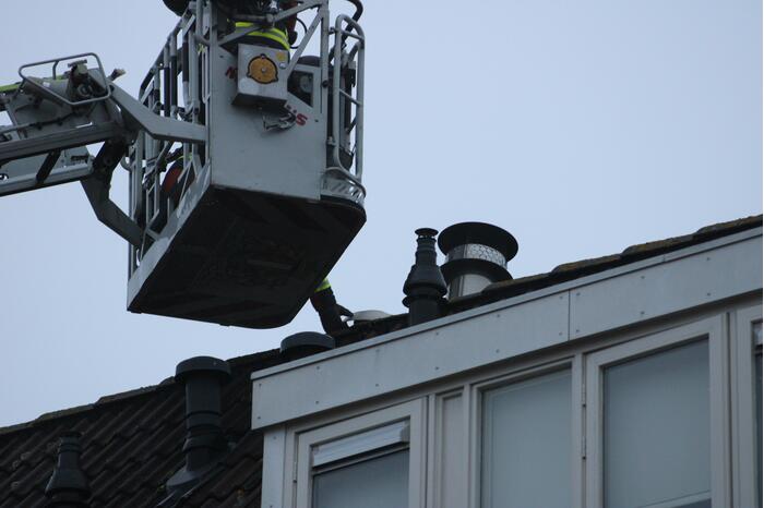 Met de hoogwerker werd het schoorsteenkanaal geïnspecteerd of er nog brandende delen aanwezig waren. Hoe groot de schade is, is niet bekend.