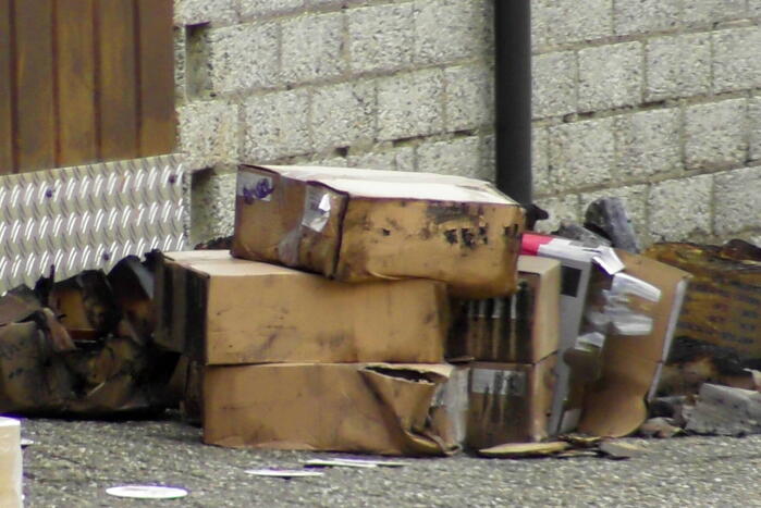 De brandweerlieden hebben wat dozen wat vermoedelijk gebrand heeft naar buiten gebracht.