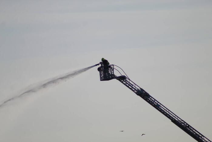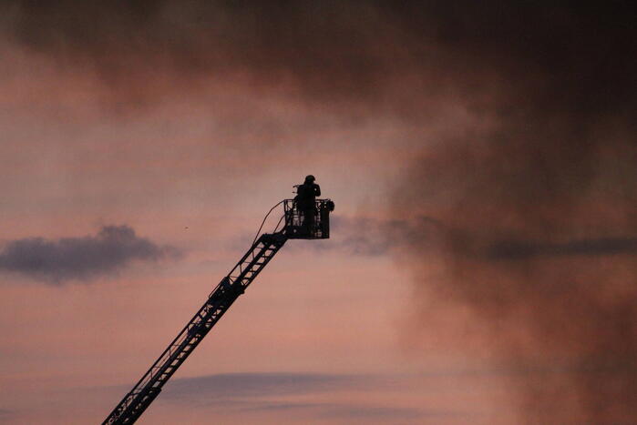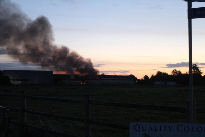 Bij aankomst van de brandweer bleek sprake van een uitslaande brand met hevige rookontwikkeling. De brandweer schaalde op naar het sein 'zeer grote brand' en GRIP1 voor de onderlinge communicatie. Een naastgelegen camping hoefde uiteindelijk niet meer ontruimd te worden. Om 09.15 uur werd het sein brand meester gegeven.