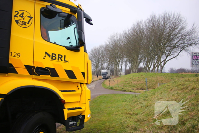 De chauffeur had zijn vrachtwagen per ongeluk vastgereden, waardoor hij niet meer vooruit of achteruit kon. Bergingsbedrijf BRL werd ingeschakeld om de vrachtwagen los te trekken. Met behulp van een grote berger wist BRL het voertuig weer op de weg te krijgen en hielp de chauffeur om veilig achteruit te rijden.