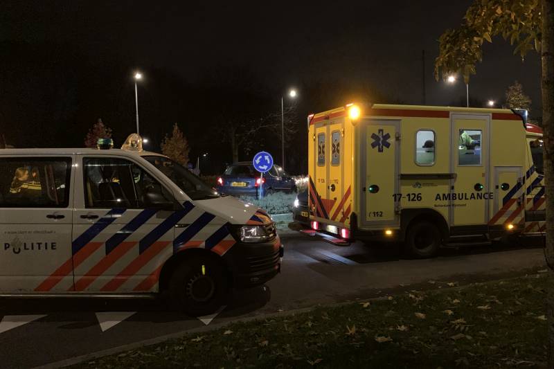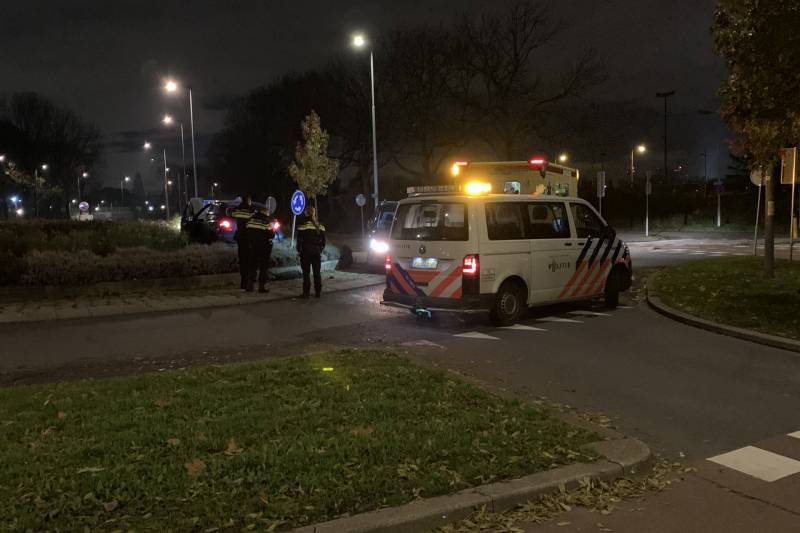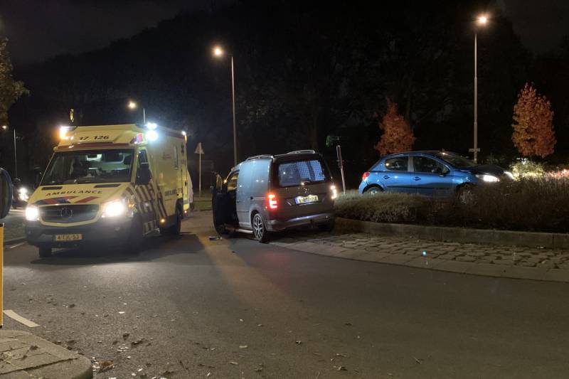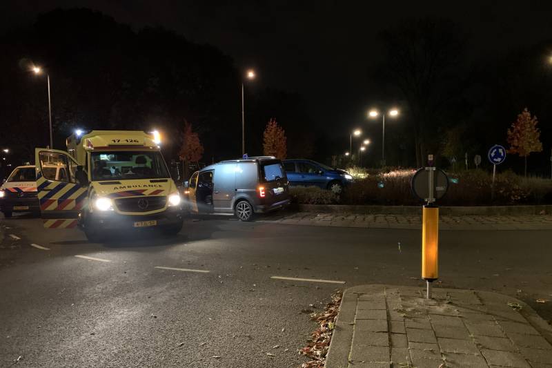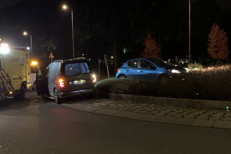Een van de voertuigen kwam hier door op een rotonde terecht. Hoe het ongeval heeft kunnen gebeurden is niet duidelijk. De politie doet onderzoek na de exacte toedracht. De mannen zijn ter plaatse behandeld in een ambulance.