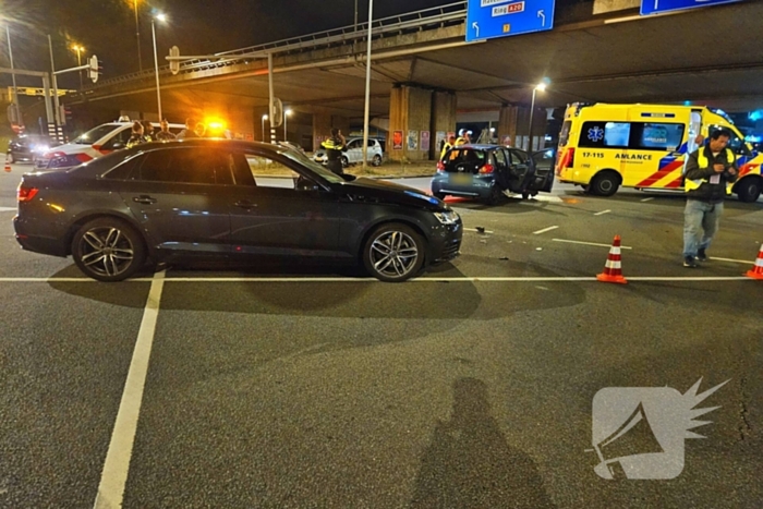 Een bergingsbedrijf is ter plaatse gekomen en heeft in ieder geval één auto afgesleept na het incident.