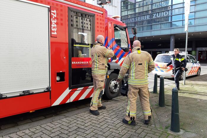 Korte brand na explosie bij voordeur Latijnse Amerikaanse supermarkt Strevelsweg - S125 in 112 Rotterdam