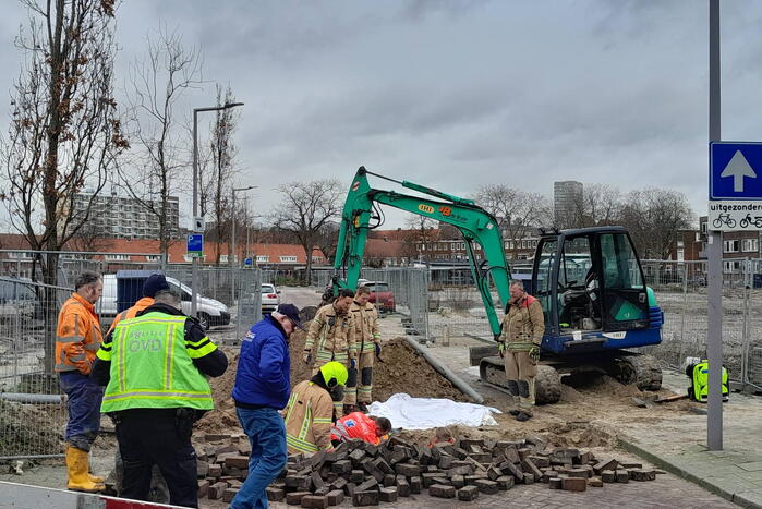 Tijdens werkzaamheden was een bouwvakker vast komen te zitten in een diepe kuil. Met hulp van de brandweer kon het slachtoffer worden bevrijd.