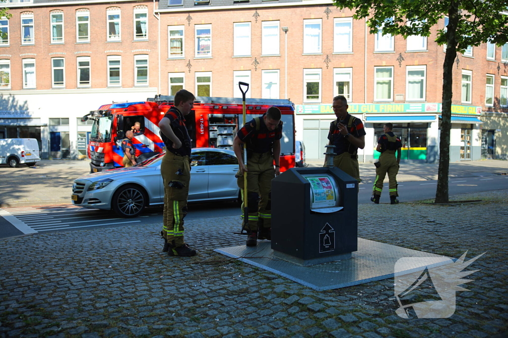 Brandweer haalt lachgasflessen uit afvalcontainer