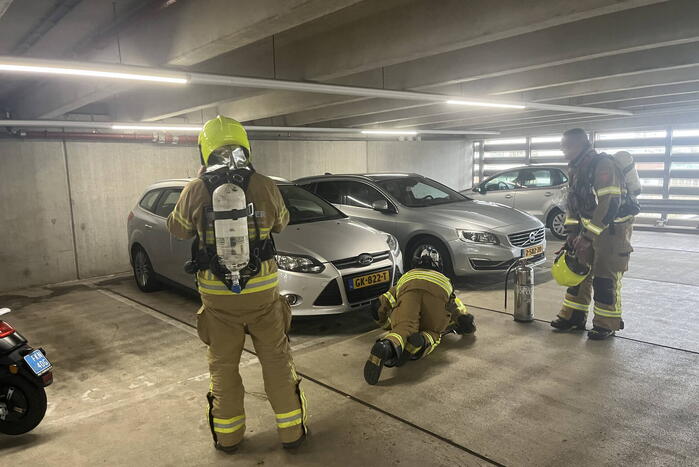 In een parkeergarage was een lekkage van olie ontstaan onder een auto. Omdat de olie nog warm was kwamen hier lichte dampen vanaf waarna de brandweer voor de zekerheid werd gebeld. De brandweer heeft een controle uitgevoerd bij de auto maar geen bijzonderheden geconstateerd.