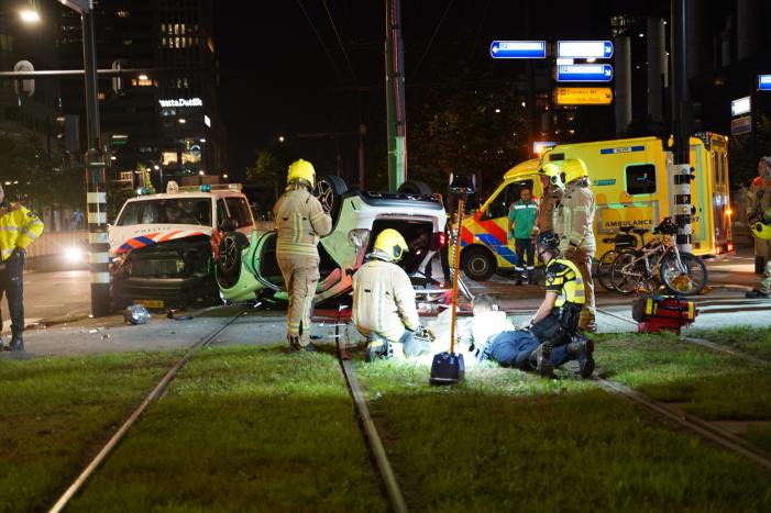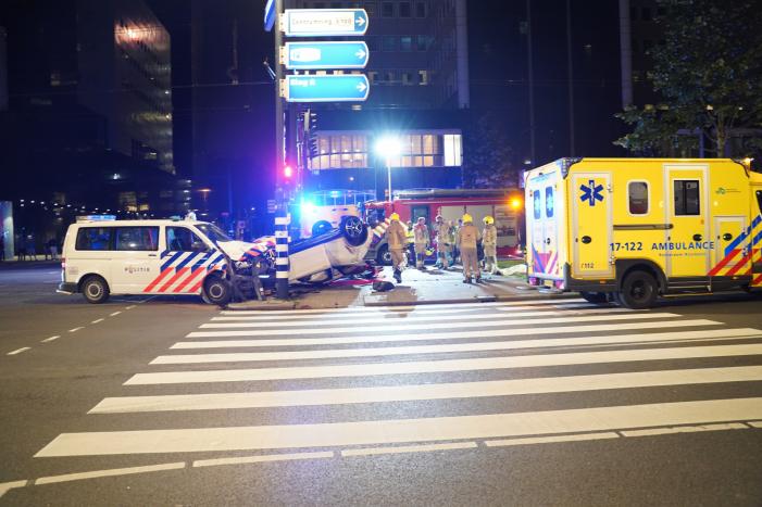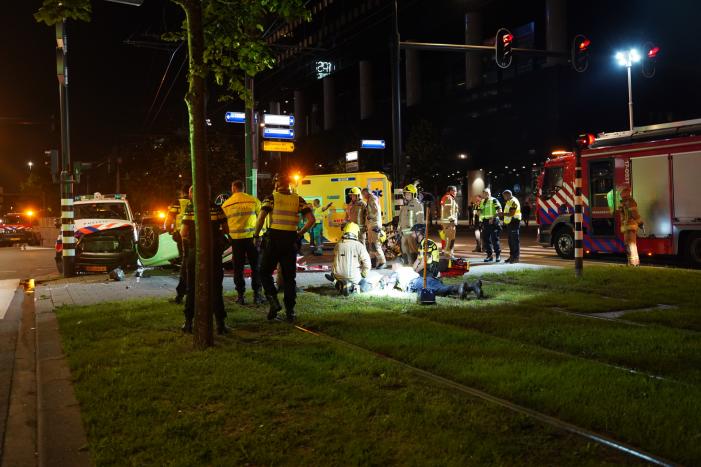 ROTTERDAM - Zondagmorgen 21 juni rond 3.15 uur heeft een ongeval plaatsgevonden aan de Weena in 112 Rotterdam. Een politiebus botste op de personenauto en daardoor raakte er meerdere personen gewond.