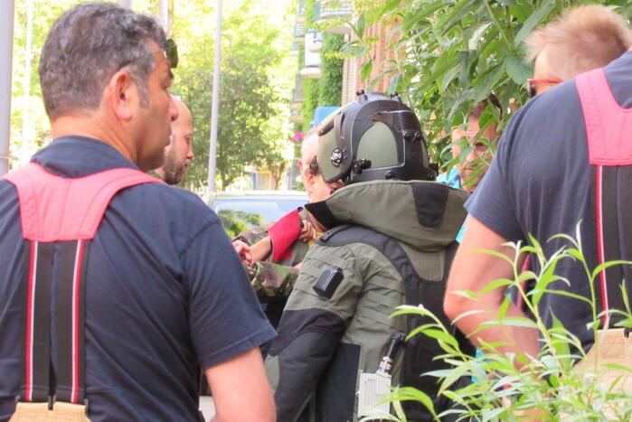 ROTTERDAM - Dinsdagmiddag 6 juni omstreeks 15.40 uur zijn talrijke hulpdiensten grootschalig ingezet na een melding van een mogelijk explosief in een woning aan de Rembrandtstraat in 112 Rotterdam.