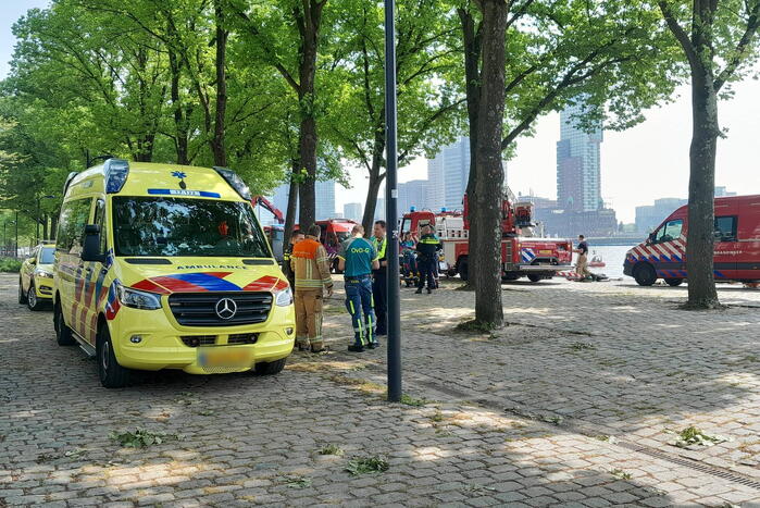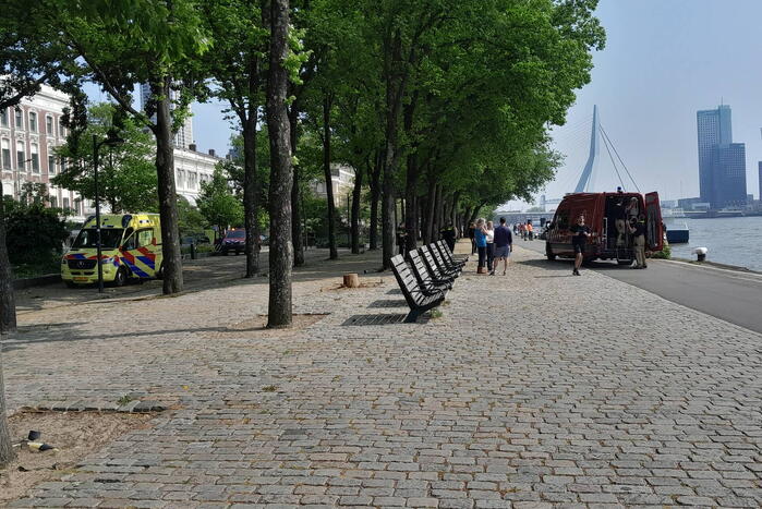 ROTTERDAM - Maandagmorgen 22 mei tegen 11.20 uur hebben de hulpdiensten grootschalig gereageerd op een melding van een persoon te water in de Reddingsactie Nieuwe Maas aan de Westerkade in 112 Rotterdam.