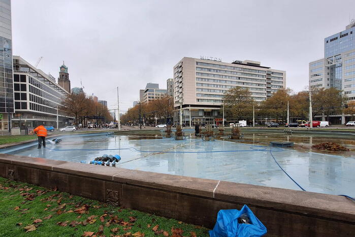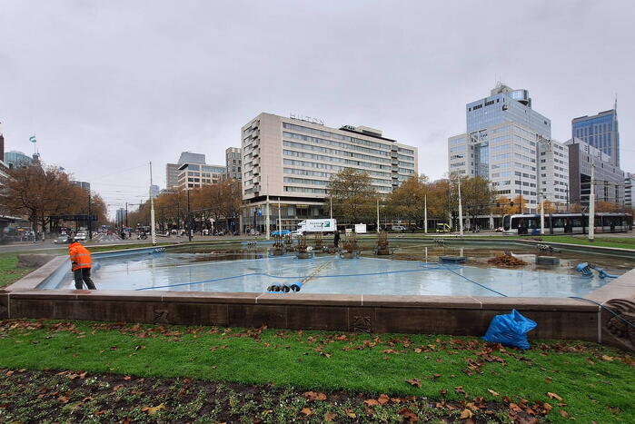 De fontein waar normaal driehonderdduizend liter water in ligt is vanmorgen volledig leeggepompt. De gemeente schat de schade op minimaal vijfduizend euro. Het schoonmaken zal nog enkele dagen duren.