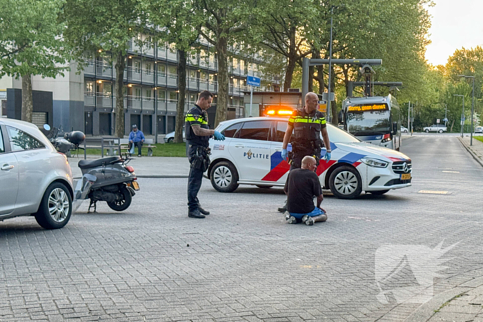 Een scooterrijder werd op de kruising aangereden door een automobiliste. De scooterrijder had veel pijn en een bebloed gezicht maar was wel aanspreekbaar. Hij werd na behandeling door de ambulancemedewerkers naar het ziekenhuis vervoerd. De rechterkant van de auto liep schade op.