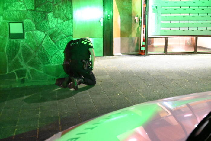 Bij aankomst van de hulpdiensten bleek er gelukkig geen brand te zijn echter was de schade aan de toegangsdeur van de flat fors. Op straat en in het portiek liggen meerdere stukken van de explosie. Team Explosieve Veiligheid en Forensische Opsporing stellen een onderzoek in en zullen diverse sporen veiligstellen voor onderzoek.