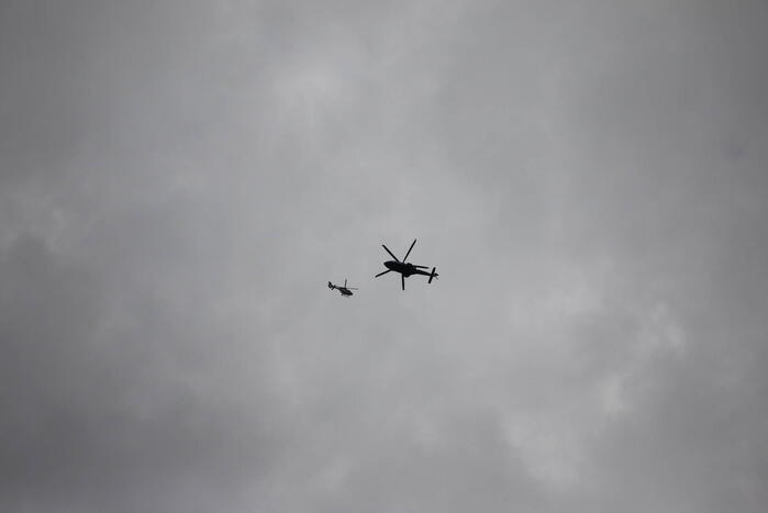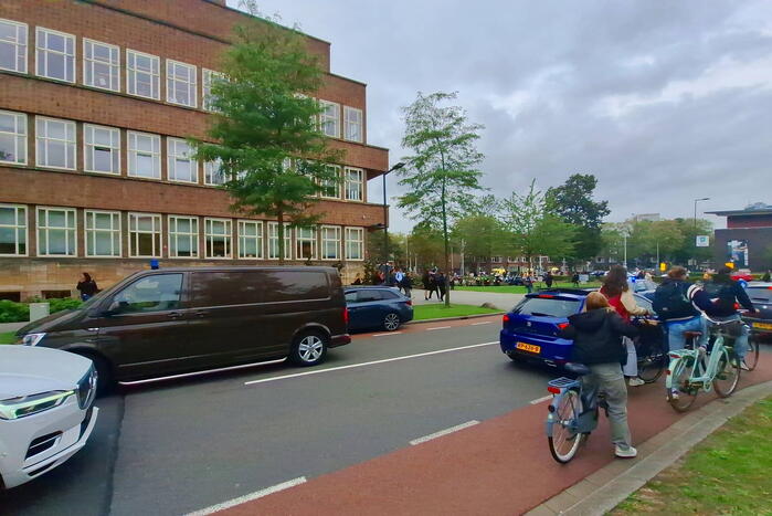De politie is met veel eenheden aanwezig. Daarnaast is het arrestatieteam ingezet. Dader is mogelijk op weg op motorfiets. Draagt gevechtskleding, is lang, heeft zwart haar en is midden 20. Hij draagt een rugzak en heeft een handvuurwapen.