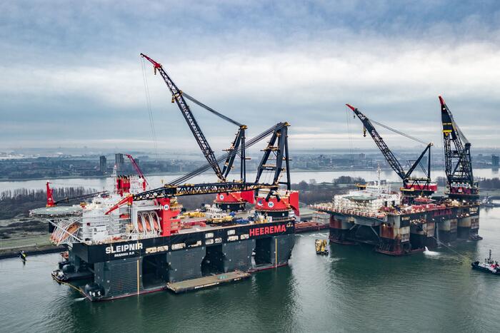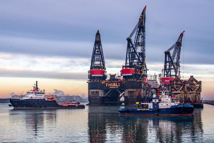 ROZENBURG - Zondagmorgen 6 december rond 6.00 uur arriveerde het diepwater-constructieschip Thialf op de Landtong bij 112 Rozenburg.
