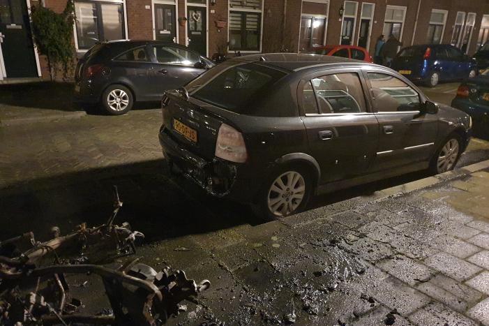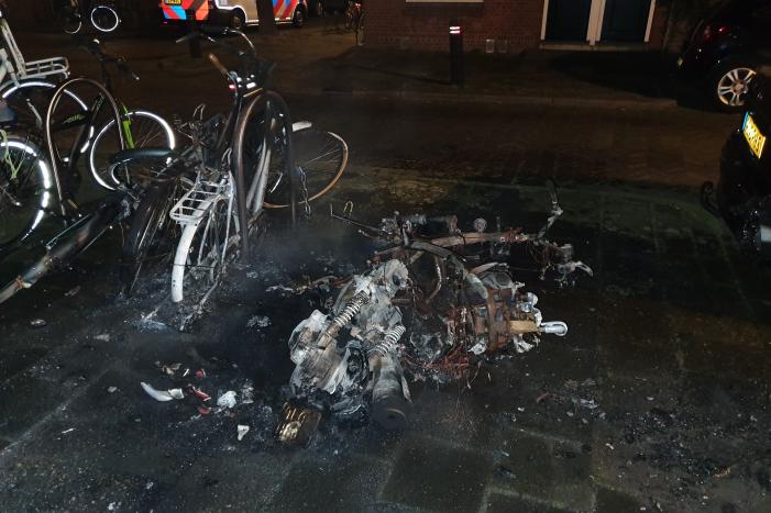 Meerdere fietsen, een scooter en een auto die naast de brandende scooter stonden, zijn door de brand zo warm geworden dat deze ook schade hebben opgelopen.