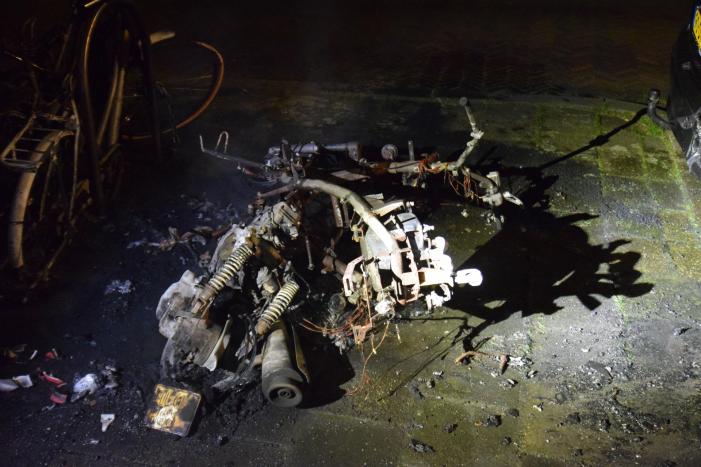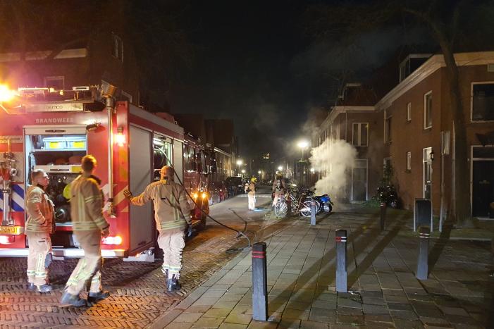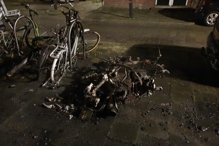 SCHIEDAM - Maandagmorgen 16 maart rond 02.59 uur is een scooter aan de Van Beverenstraat in 112 Schiedam in vlammen opgegaan.
