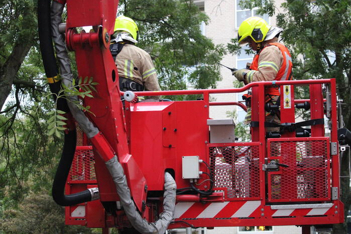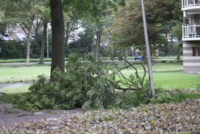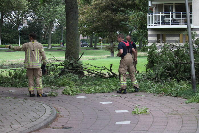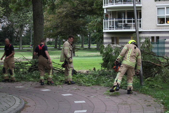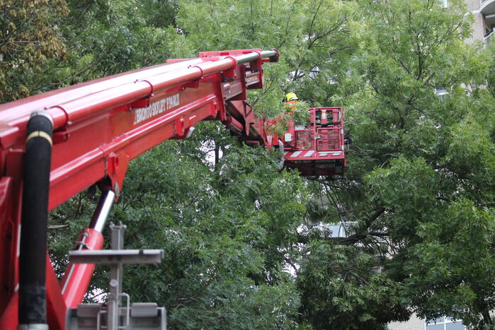 Door de weersomstandigheden dreigde een boom te vallen. De brandweer heeft met behulp van een hoogwerker de takken doorgezaagd en verwijderd.