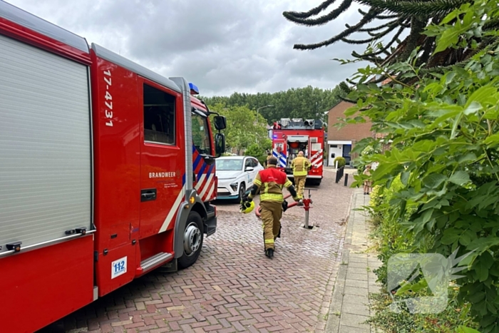 In een woning werd een gaslucht waargenomen. De brandweer forceerde de deur en voerde metingen uit. Voor het geval dat de situatie zou verslechteren, werden slangen klaargelegd.