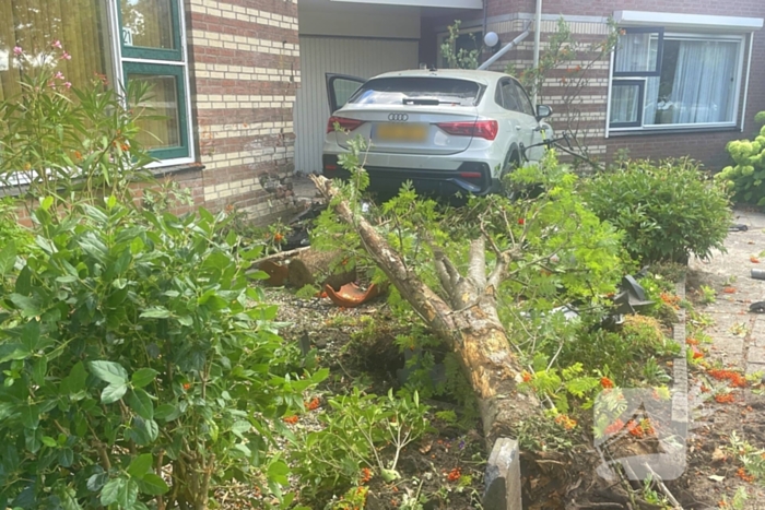 Een automobilist raakte met zijn voertuig van de weg, botste tegen een boom en kwam tot stilstand tegen een woning. Daarbij raakte een persoon gewond. Na controle door een ambulancebroeder bleek dat ze niet naar het ziekenhuis hoefde.