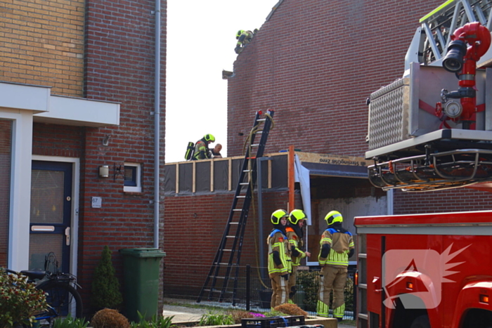 De brandweer was al snel aanwezig en schaalde op naar het sein 'middelbrand'. De brand woedde tussen het dak en een spouwmuur in. De brandweer heeft assistentie gevraagd aan een speciaal team die branden in spouwmuren kan bestrijden. Voor zover bekend raakte niemand gewond.