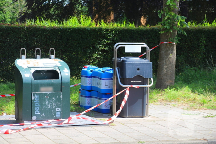 De brandweer werd samen met de Adviseur Gevaarlijke Stoffen (AGS) opgeroepen om te onderzoeken waar het exact om ging. De vaten stonden naast ondergrondse containers. Het zou gaan om vierentwintig vaten.