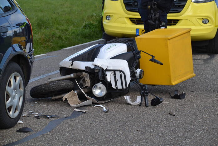 De personenauto kon zijn weg vervolgen, de scooter is opgehaald door familie.