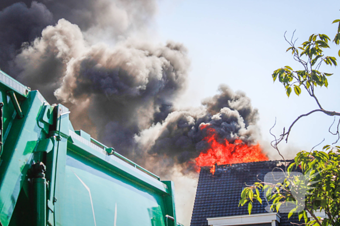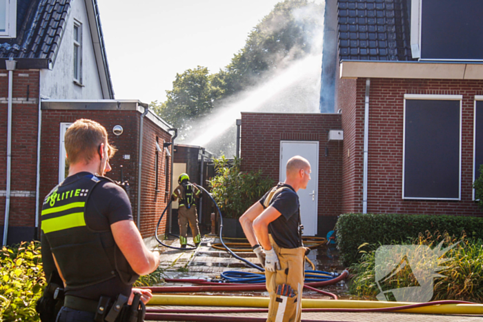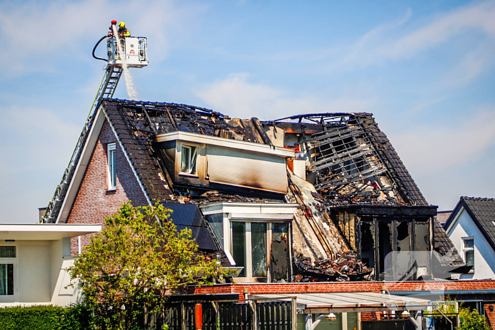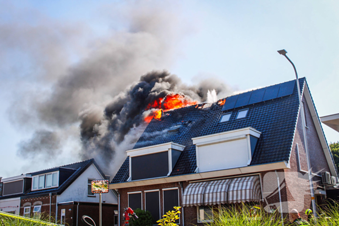 Bij aankomst van de brandweer sloegen de vlammen al uit het dak. De brandweer heeft opgeschaald naar het sein 'grote brand'. Hoe de brand was ontstaan is niet bekend. Op het dak zouden zonnepanelen liggen. Twee woningen zijn als gevolg van de brand voorlopig onbewoonbaar.