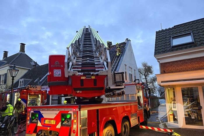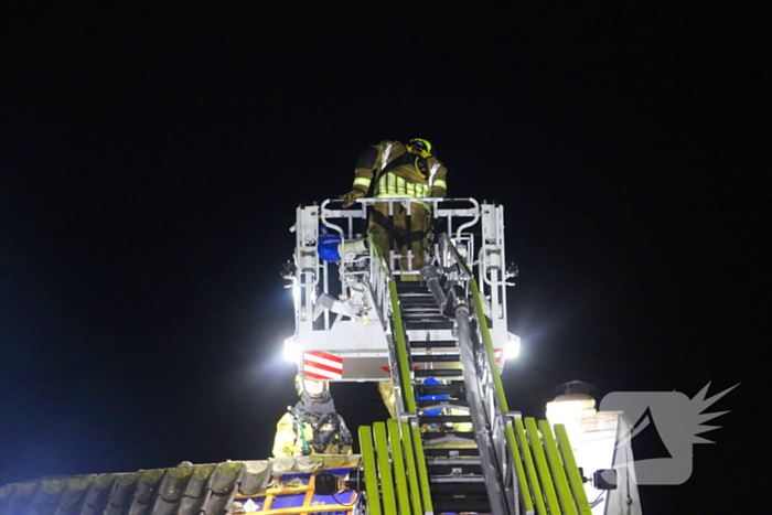 De brandweer werd grootschalig ingezet voor een brand in het dak van een woning. De brand zou begonnen zijn door een schoorsteenbrand die is doorgeslagen naar de rieten onderlaag van het dak. De brandweer heeft dan ook opgeschaald naar het sein 'grote brand'. De brandweer heeft delen van het dak weggehaald om te controleren of de brand daadwerkelijk uit is. Twee bewoners wisten veilig het pand te verlaten.De straat was niet toegankelijk voor verkeer tijdens dit incident.