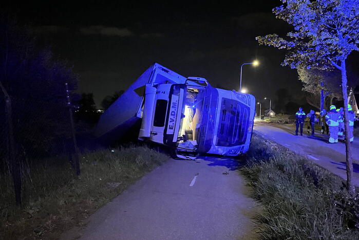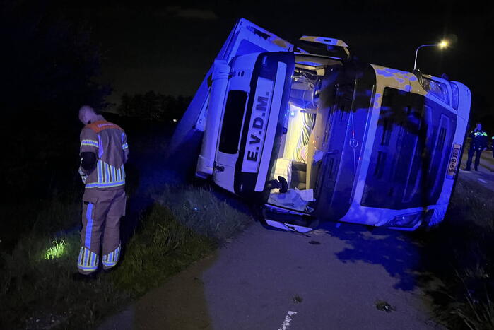 Meerdere hulpdiensten werden opgeroepen voor een voertuig te water. Echter bij aankomst van de hulpdiensten bleek het te gaan om een vrachtwagenchauffeur die door nog onbekende reden de berm ingereden was, waarna hij de macht over het stuur verloor, een boom uit de grond reed en op de zijkant belandde in de sloot. De vrachtwagen gleed nog een stuk door waardoor de trailer, gevuld met bloemen, gedeeltelijk in het water kwam. De vrachtwagenchauffeur kon zelfstandig de vrachtwagen uit komen en raakte niet gewond. De vrachtwagen raakte door het ongeval flink beschadigd geraakt.