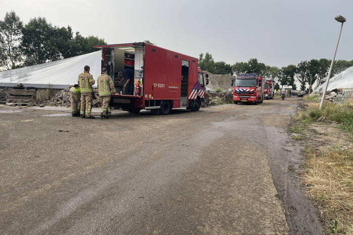 De brandweer heeft nog uren werk om het vuur volledig uit te krijgen. Een drone van de brandweer is ingezet om beeld vanaf boven te hebben.
