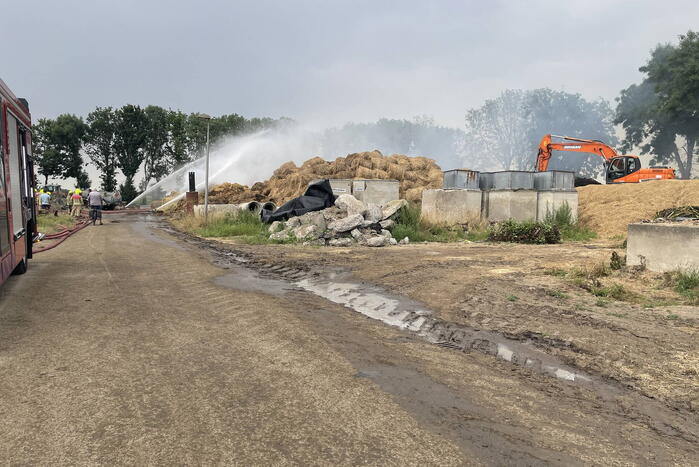 Bij de brand komt veel rook vrij die in de wijde omgeving te zien is. Om genoeg materiaal in te kunnen zetten om de brand te kunnen blussen is opgeschaald naar het sein grote brand. De hooibalen moeten uit elkaar worden gehaald om volledig te kunnen blussen.